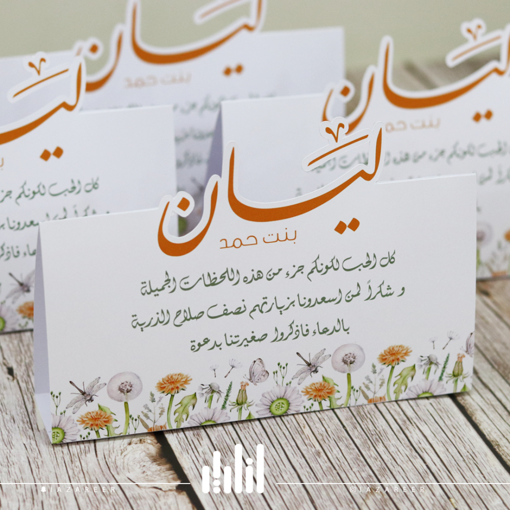 كرت طاولة بثيم زهور لون برتقالي