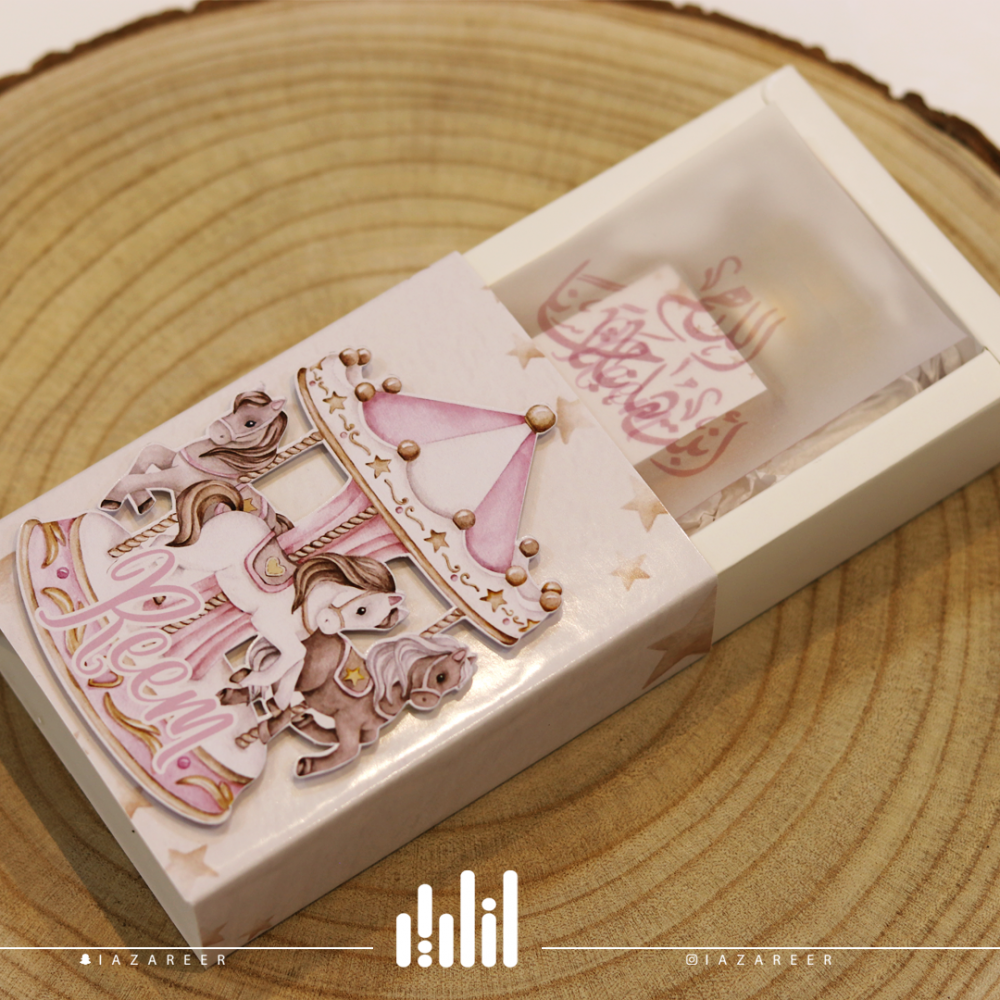 علبة توزيعات سحب بثيم لعبة الأحصنة لون وردي